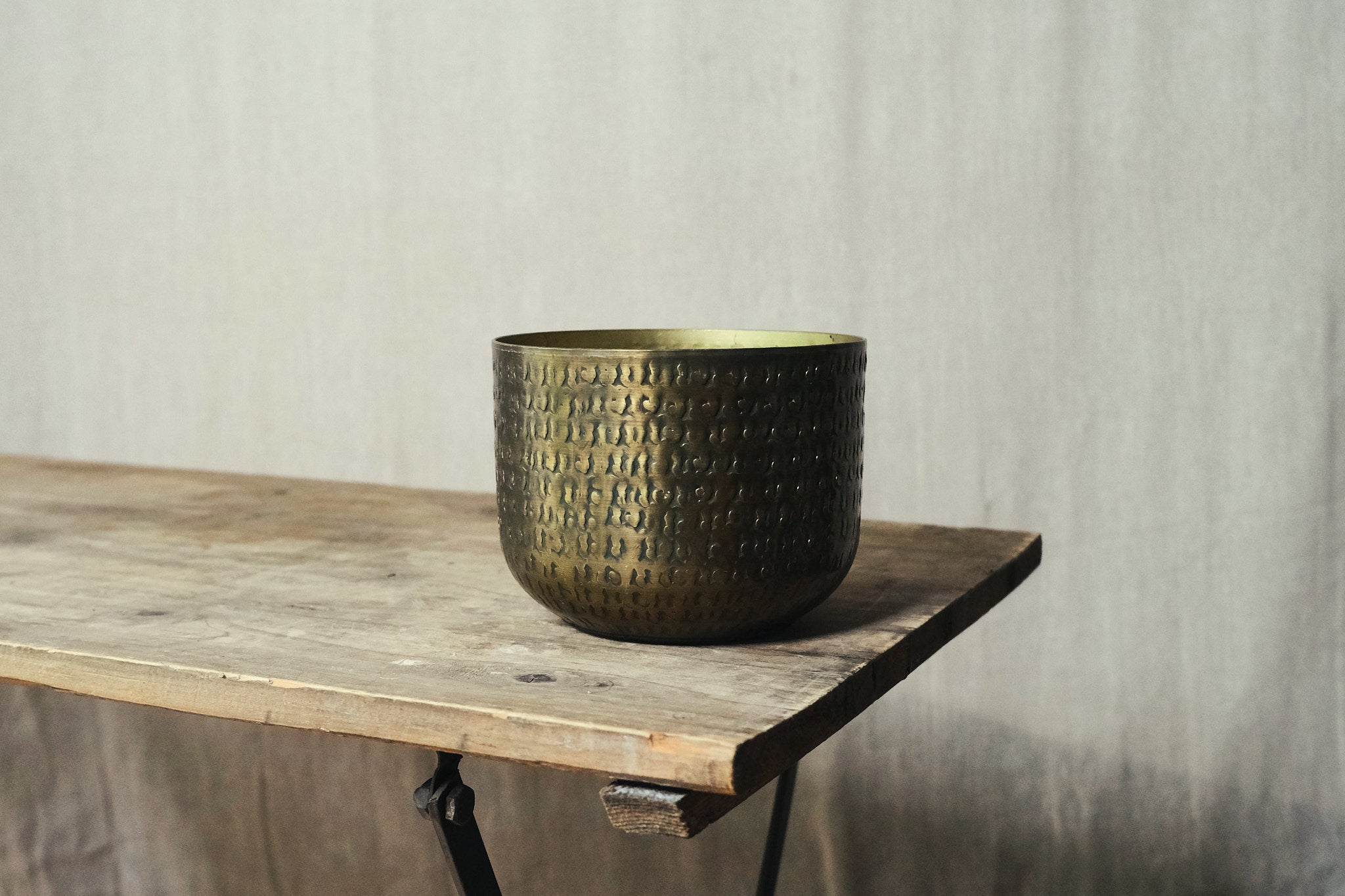 Add a touch of warmth and an antique look to your pot collection with these raw and textured aluminium pot covers with a brass coloured finish. Pair with rich and earthy terracotta and deep browns for a timeless look that lets your houseplants shine. These pots have no drainage holes so are suitable as nursery pot covers for indoor plants only.
